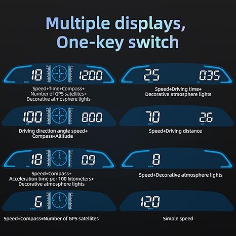- Driving Safety Alert: What is the most important thing about driving? As we all know, life safety is the first, speeding and fatigued driving are not allowed, our car overspeed alarm HUD has two important reminders, speeding alert and fatigue driving alert, when the speed exceeds your set value, it will emit a ticking sound to remind you so as to reduce the speed; driving time over 4 hours will remind you to need a short break, a caring safety butler during the journey